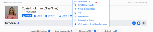 Please record any medical facts on BreatheHR – (visit your profile -> ‘More’ –> ‘Medical Facts’).