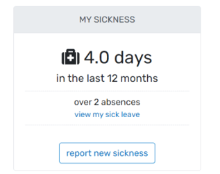 1. In the morning prior to your usual start time, log into Breathe and select “Report New Sickness” on your Dashboard: