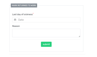 7. Add in the day you came back to work, a reason if applicable and click submit: