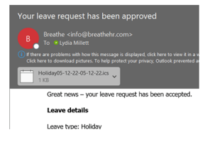 4. Once approved, you’ll receive an email and the leave will move to the “Booked” tab of your leave section on Breathe.