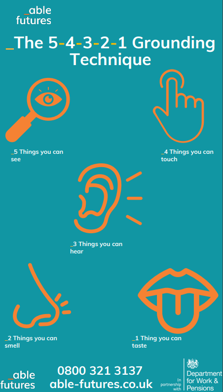 Able Futures - support your mental health & reduce your feelings of anxiety with the 5-4-3-2-1 technique